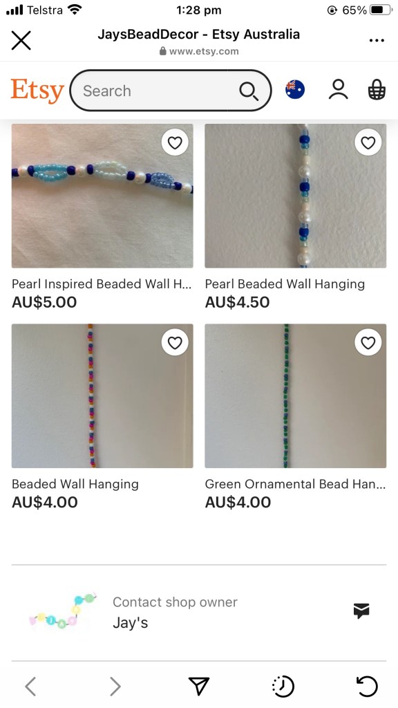 For my digital artifact, Janae and I decided to start a small business on Etsy where we sell cute and funky handmade hanging bead decorations. We called it ‘Jay’s Bead Decor’. In order to start this business, we had to come up with designs for our products and produce them. We then created an Etsy page in order to sell the beads on, I also created an Instagram account that we could use to promote our bead decor. We decided that Janae would focus on making the beads and I would focus on running the Instagram account, and together we would both run the Etsy account. We are super excited and passionate about this project however, it hasn’t been easy.
