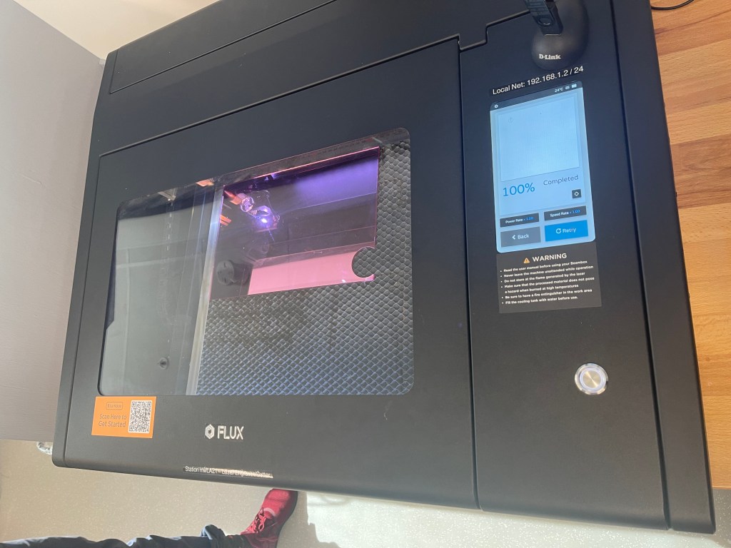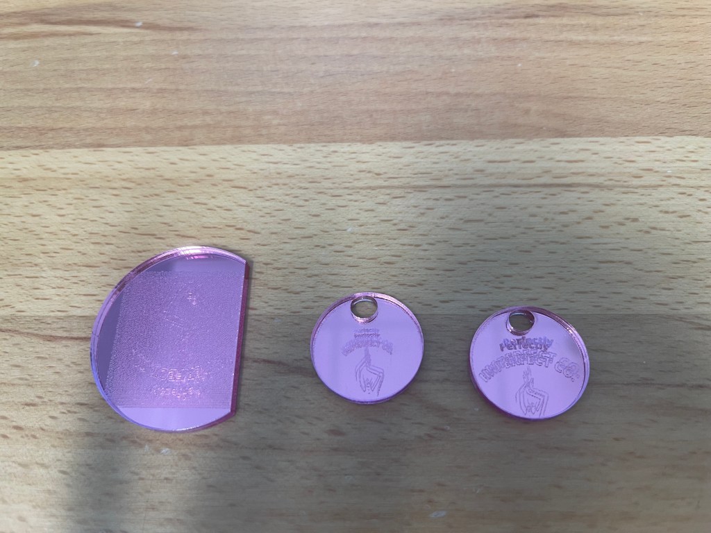 Next, we once again had some issues with the laser cutter. Our first design was too big and the wrong shape. It also snapped and did not print correctly. Ming and Ngoc adjusted the design on the computer software and tried again. This time it cut out the right size however the design was quite small and difficult to see. Finally, on the third attempt, we were happy with the results.
