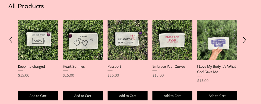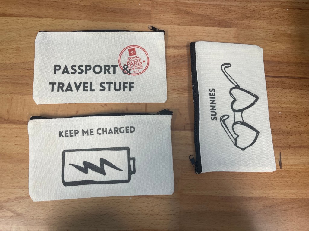 The new travel pouches are labelled with unique designs so that users can easily organise their things when travelling. This time Andrea used Canva instead of MidJourney to create our designs for a simpler and cleaner look. On the back of the pouches, Andrea and I included quotes generated by ChatGPT to promote positive thinking as having a healthy mindset is a key factor of our brand.