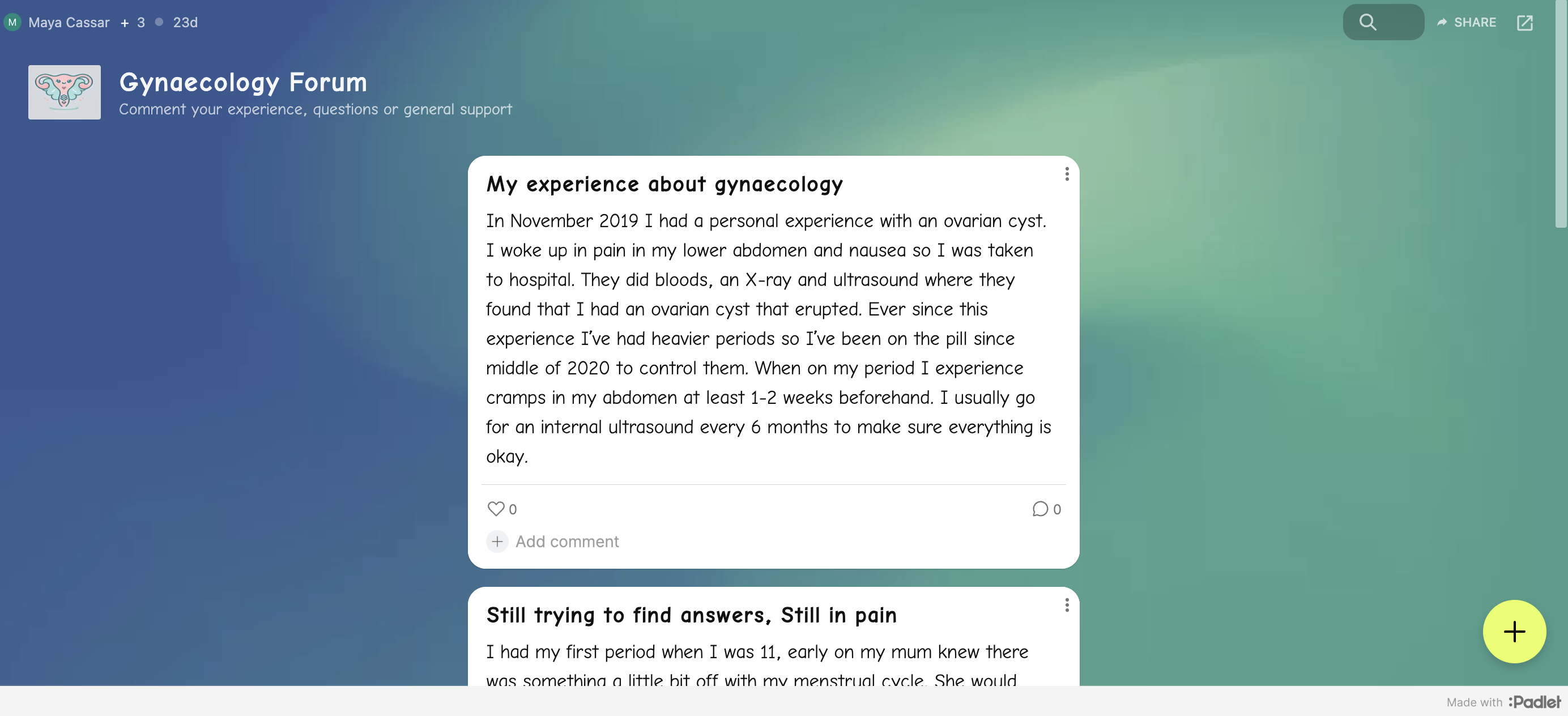 The feedback I received from users of the first version of my website was overwhelmingly positive and many people found it to be an invaluable tool and wished they had access to it during their own medical journeys. However, it was a conversation with a friend that marked a turning point in the project. We discussed how the most visited section of the site by far was the gynaecology category. While this wasn’t surprising, it was deeply saddening to see how many women were navigating these difficult experiences. This conversation made me realise how I could refine the site to make it even more effective. Before this, I had been considering expanding the website by adding more categories, covering each organ, bone, nerve, and system. But as I started implementing this, it quickly felt overwhelming and lacked a clear focus. It didn’t feel like the website was serving a meaningful purpose anymore. Recognising that the gynaecology section was the most popular, I decided to narrow the focus of the project rather than expand it. I chose to reframe Medical Media Mission as a platform specifically dedicated to highlighting the widespread issues women face with reproductive health and the poor treatment they often receive from medical professionals. This shift not only gave the project a clearer purpose but also allowed it to better serve the needs of its users.